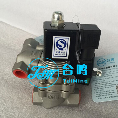上海臺(tái)鳴蒸汽電磁閥采用活塞式結(jié)構(gòu),密封性超好,無泄漏,高溫蒸汽電磁閥閥芯采用標(biāo)準(zhǔn)304、316制作,防腐性能超好,不銹鋼蒸汽電磁閥適用于高溫蒸汽、過熱蒸汽、導(dǎo)熱溫、柴油、蒸餾水、電鍍廢液等流體介質(zhì)。